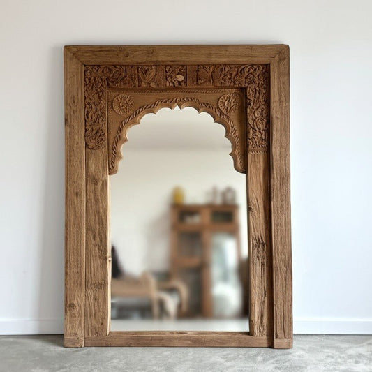 Hand carved Mirror Natural