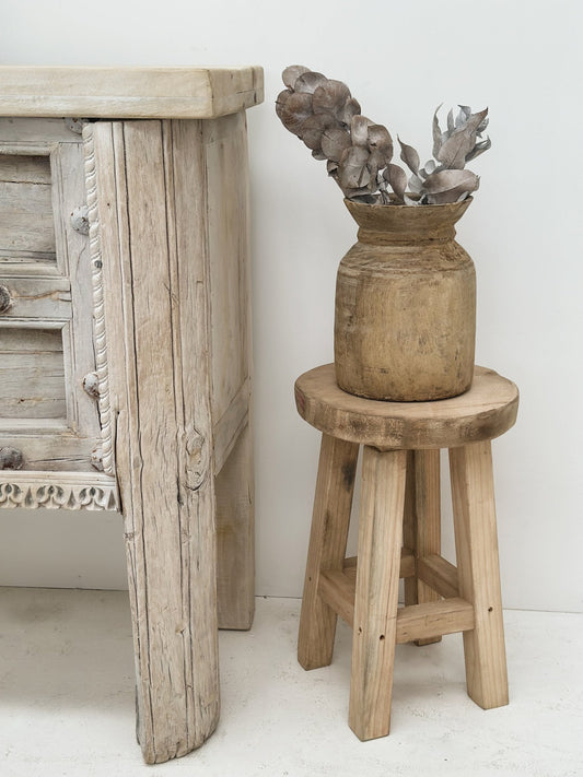 Rustic Round Stool - Bleach