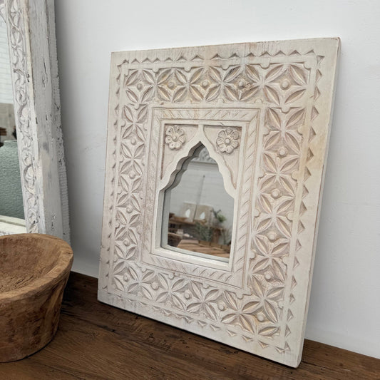 Sold outWhite Carved Mirror